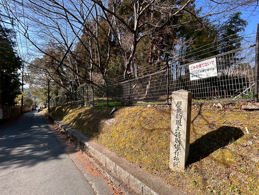 手前に橙色の瓦が見え、その奥には松の木と、これから旬の桜の木、夏には送り火の大文字も望めます。