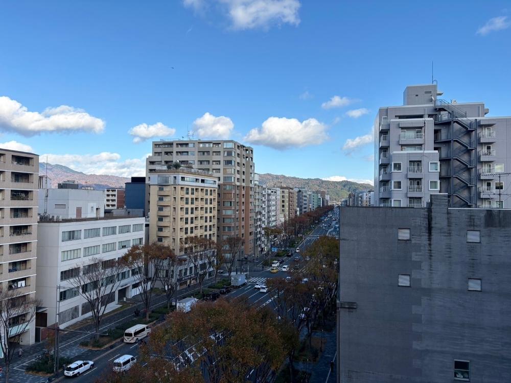 窓の向こうに見える暗くなった市内、その中で点々と光るビルの景色、その遠くの京都タワーをぼんやりと眺めながら、