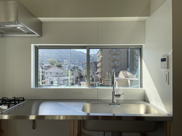3階の窓から見える街と空の比率が気持ちよく、自然光もたっぷり浴びられる部屋。