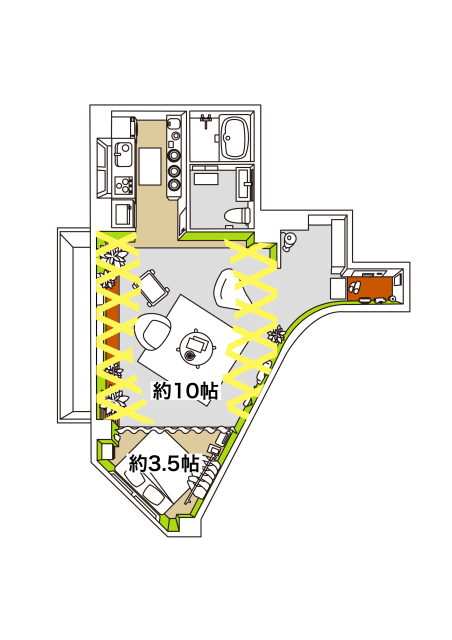 こちらも、壁などで仕切らず、高さに変化を出すことで部屋にメリハリをつける工夫により、部屋を無駄に狭くせず、活用できます。