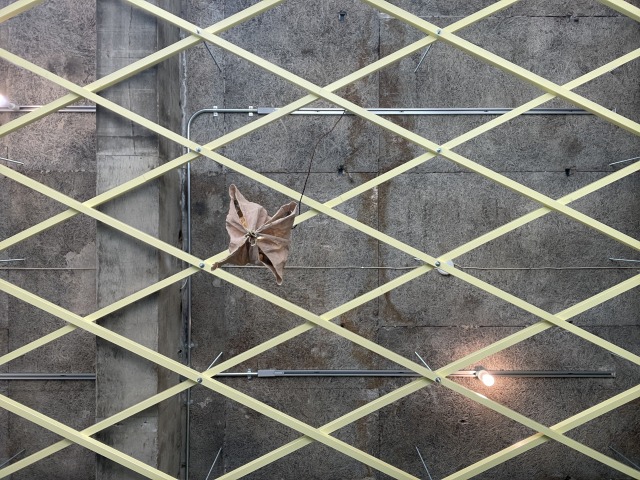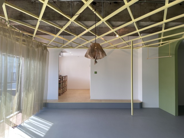 そして、この空間のミソ、天井にある格子がとにかく画期的。