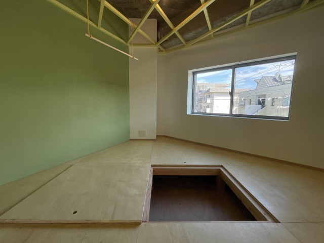小上がりの部分は、床下収納になっているので、荷物はなんぼでも置いてください。