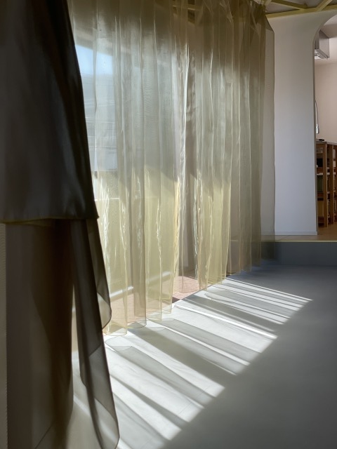 このカーテン、とにかく美しい・・少し窓を開けて、揺らぐ布をいつまでも見てられる。