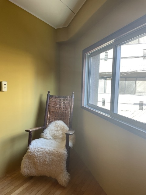 ここの窓は東向き。道路に対して斜めの位置に窓があるので、2階ですが正面にある建物が気にならず、いい感じに街が見えて気持ちがいいです。