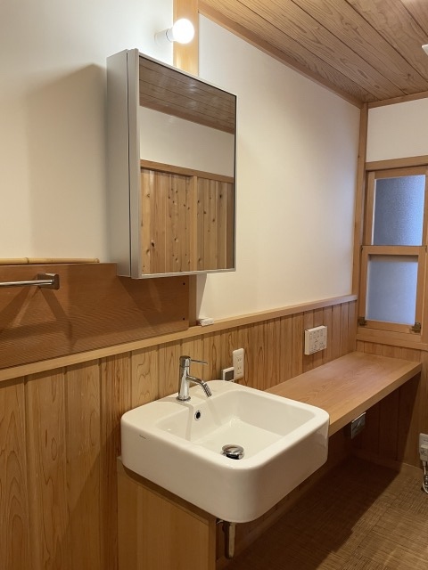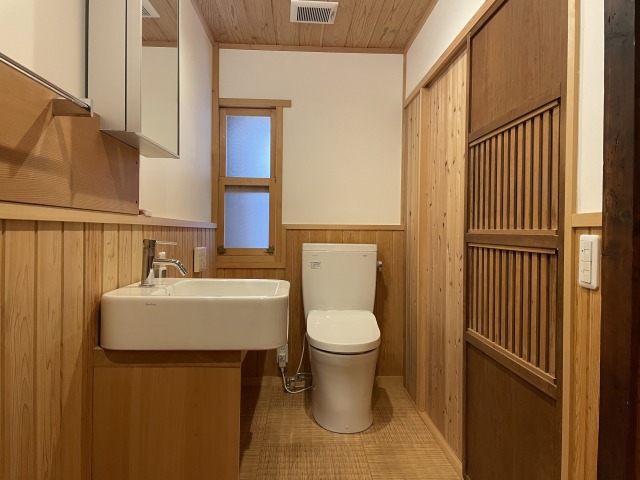 水回りは、トイレと洗面と脱衣所を一つにすることで、限られたスペースを最大の広さで使えます。