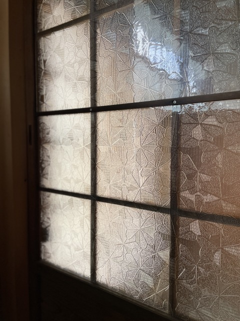 無双窓というそうです。一部をスライドすると、建具に格子状のデザインが開いたり、閉じたり。