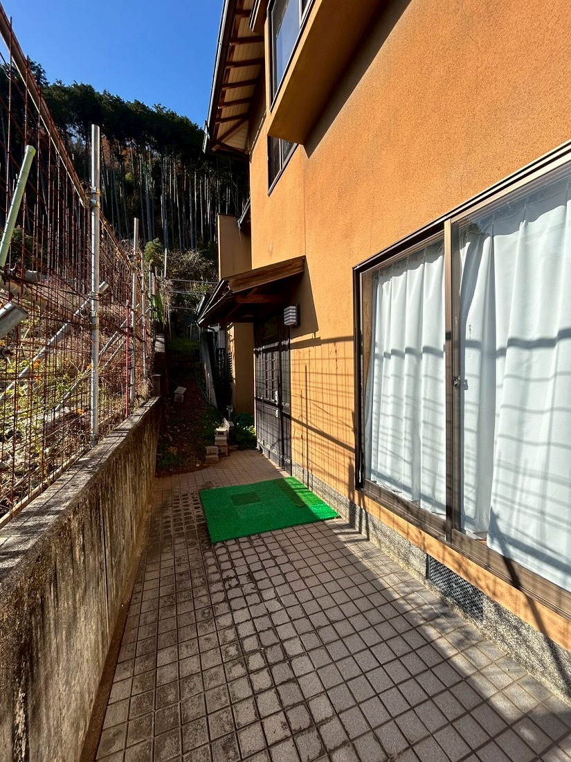 裏の土地は傾斜になっており上り降りが大変そうにぱっと見ると思ったのですが、土嚢袋で階段として敷かれていたり、色々対策はされておりました。