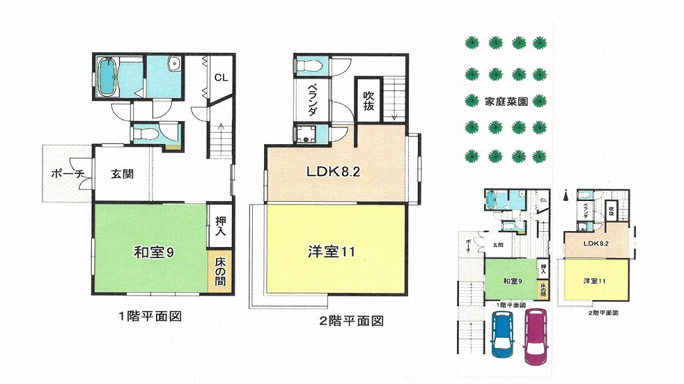 | 建物面積 | 1階:53.05㎡ 2階:48.38㎡ 合計101.43㎡(30.68坪) |