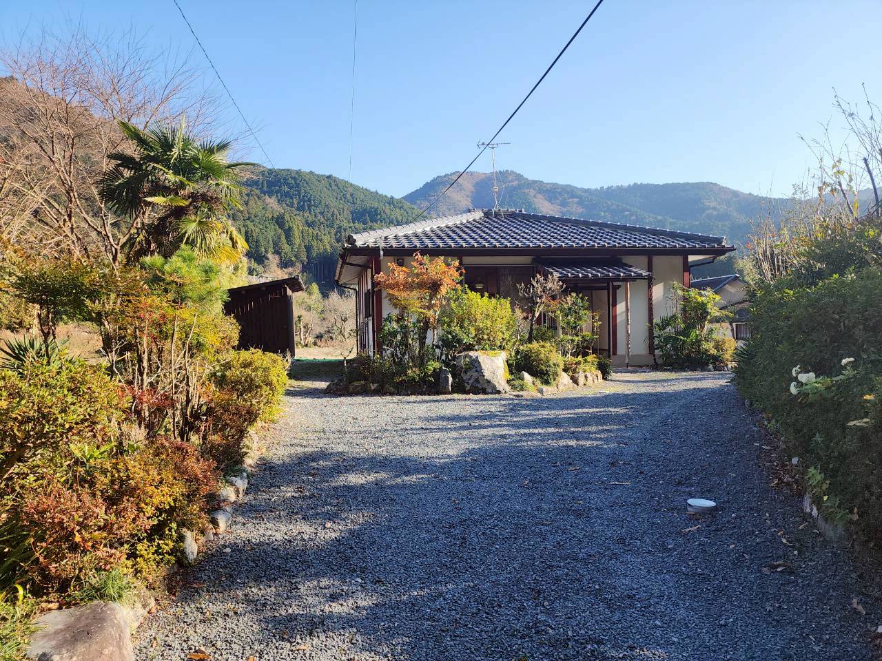 道路から玄関までのアプローチは砂利が引き詰めてあり駐車場としても十分使えます