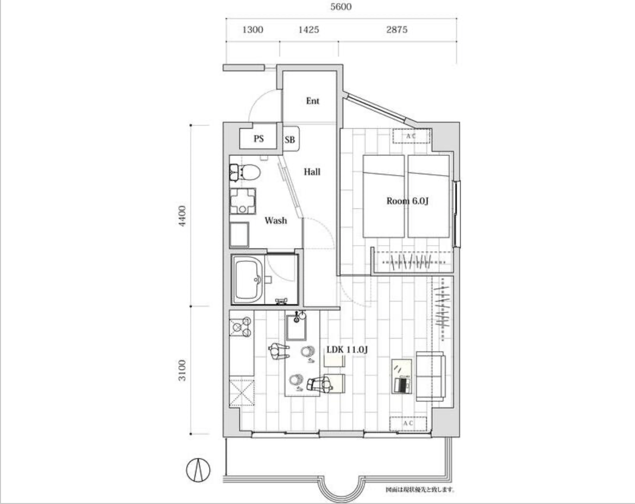 その他 間取り:1LDK(LDK11畳+洋室6畳)、南向き