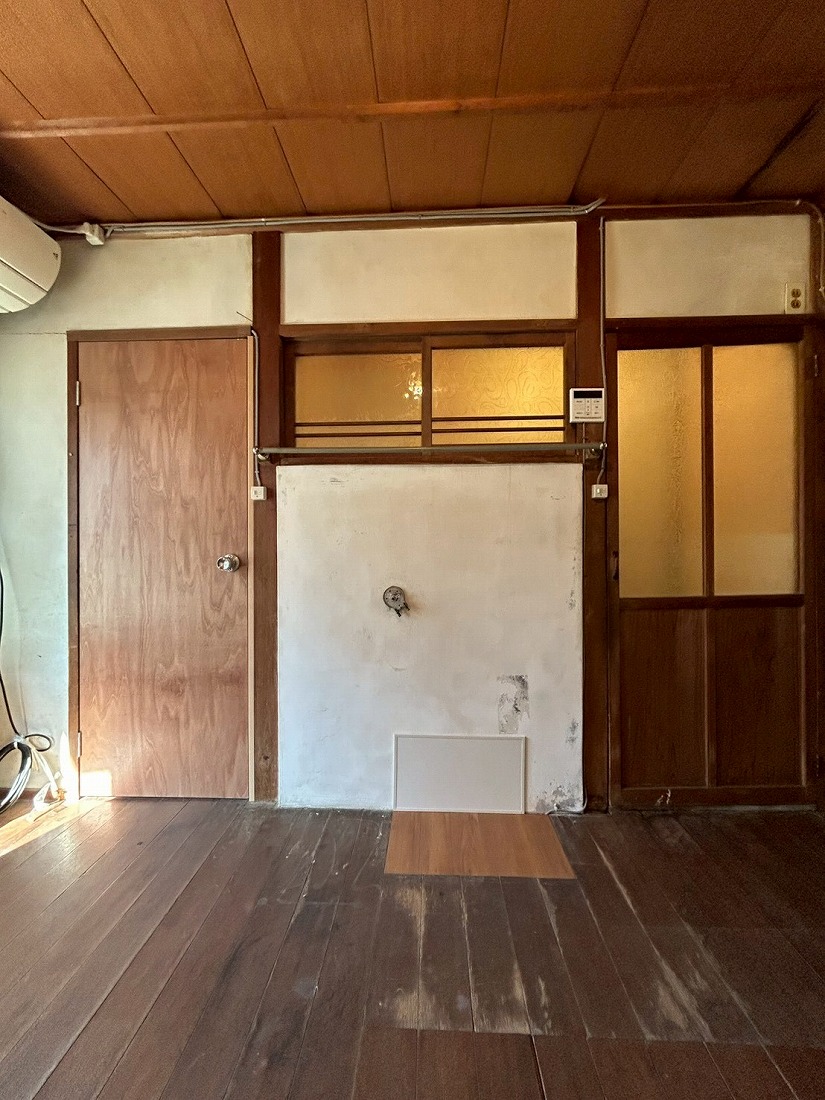 | リノベーション内容 | トイレ新設 浴室修繕 給湯器交換 扉一部交換 天井・壁一部張替 床一部張替 畳一部交換 ガラス一部交換 |