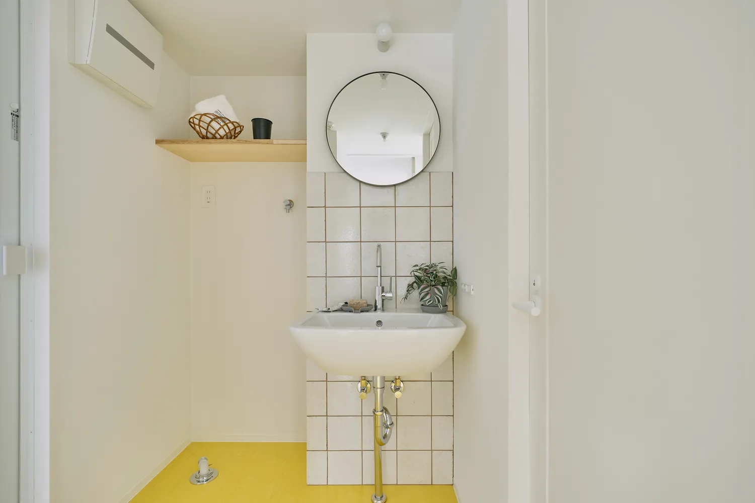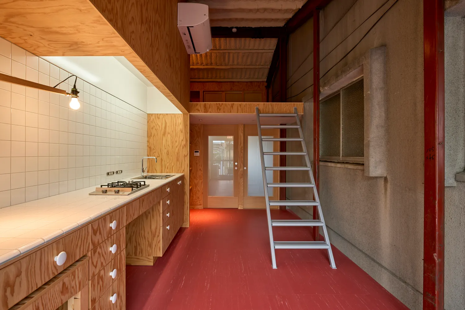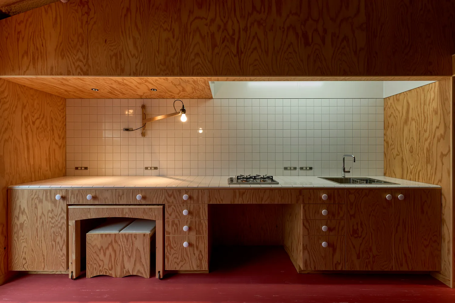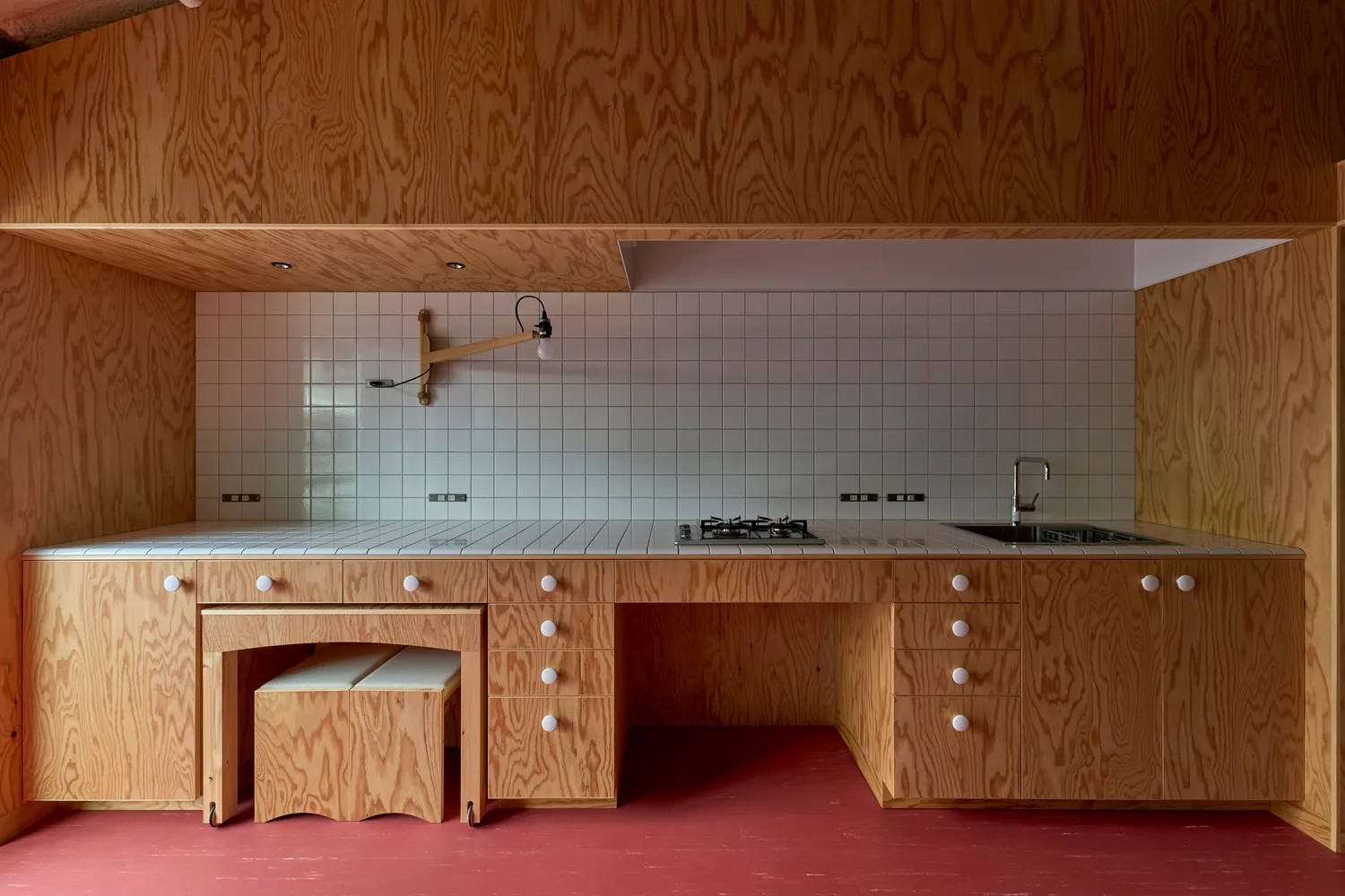 ど真ん中の扉兼パーティションの位置で、見た目も機能性も変えられるようにした。大きくはそれだけ。それから、必要最低限で機能性の高い生活道具を配備。