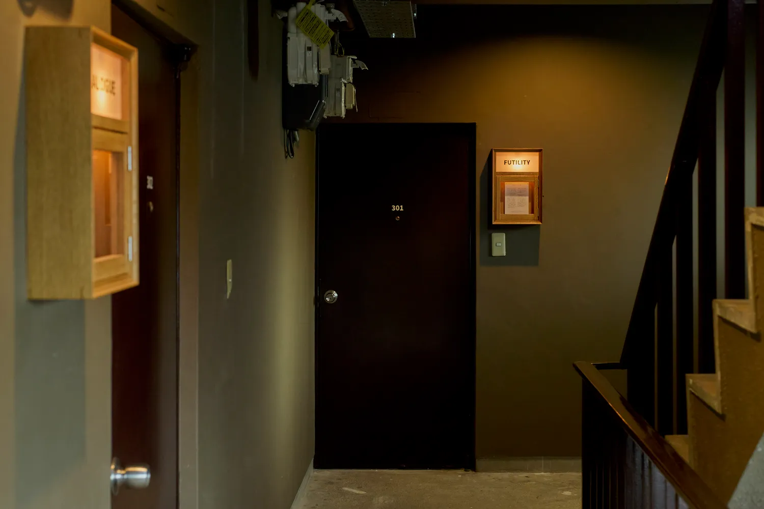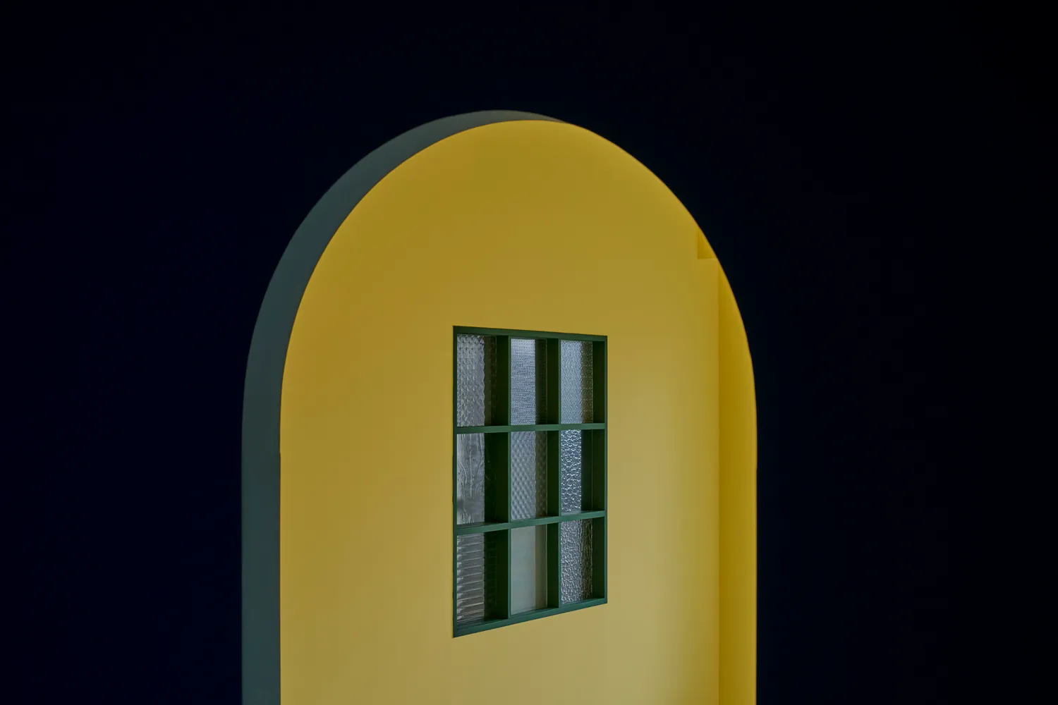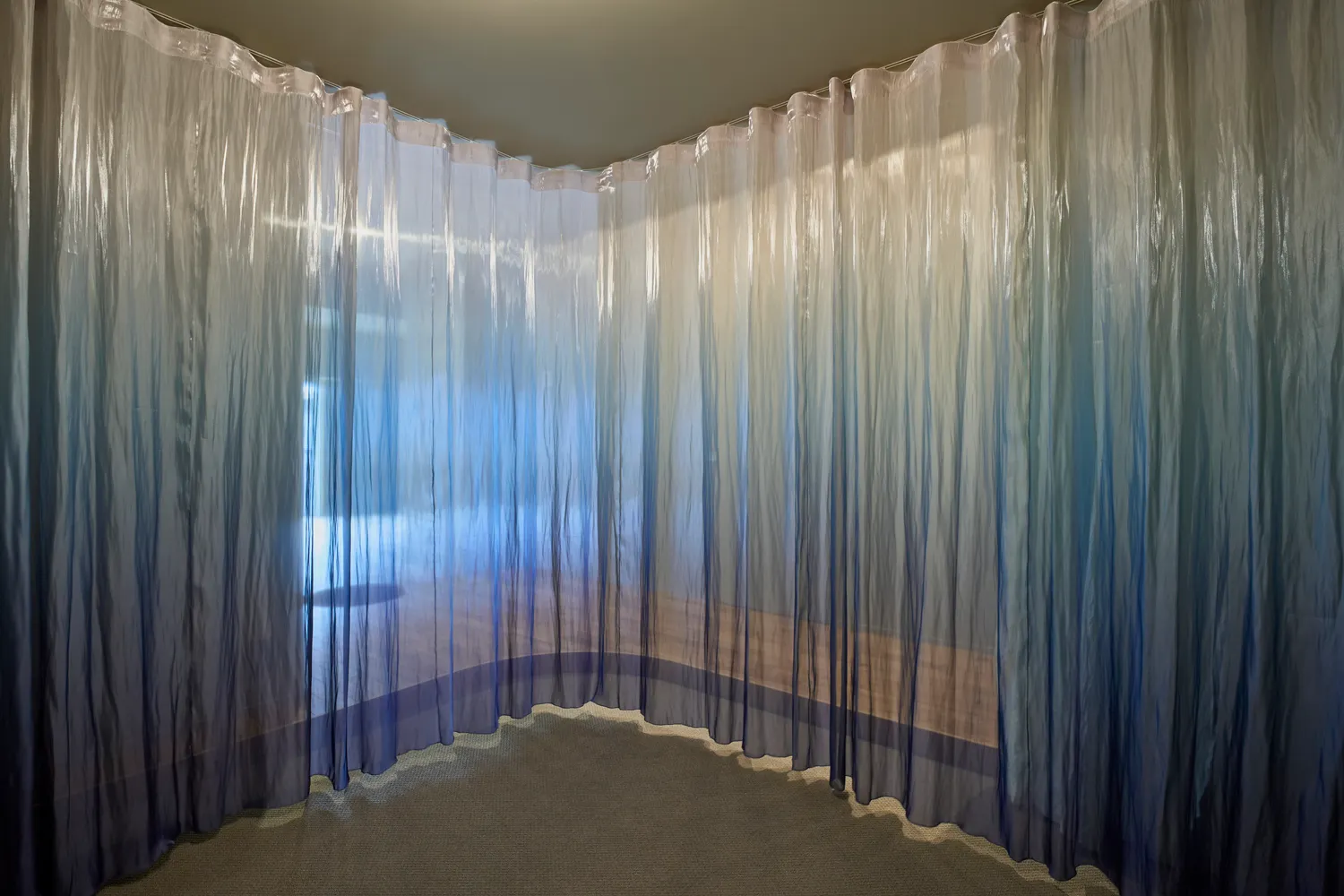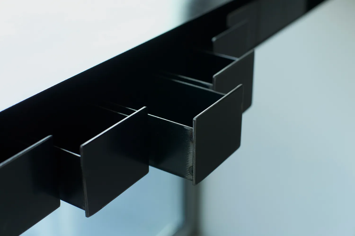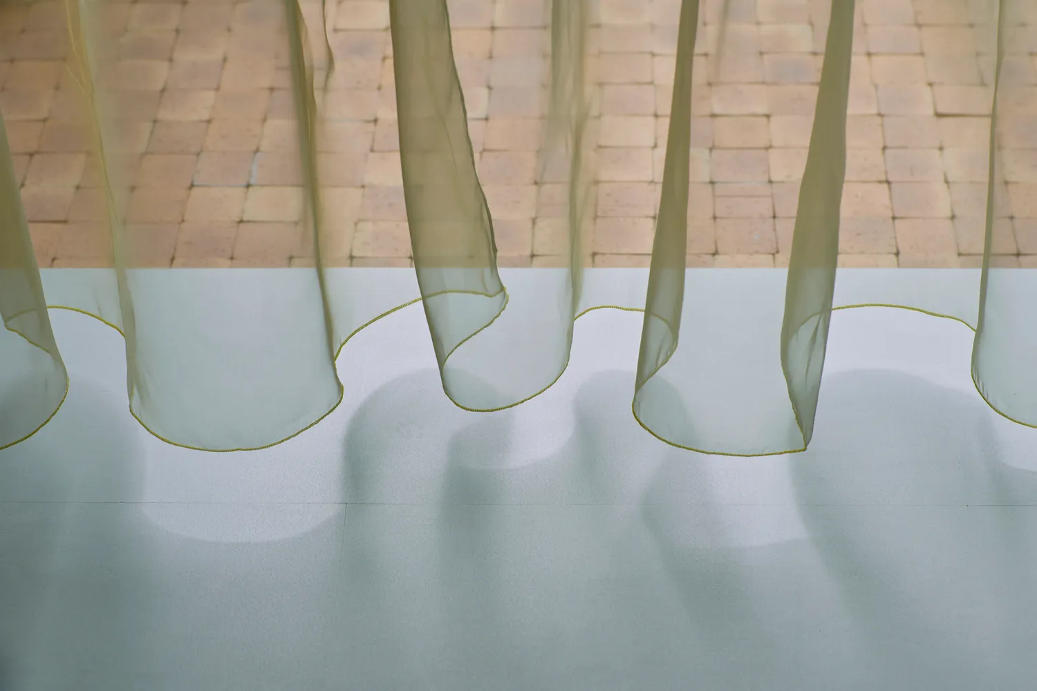 組み合わせとしている。どちらか一方に寄せた際に、透過面と不透過面が重なり遮光性能が上がる実験的な試み。