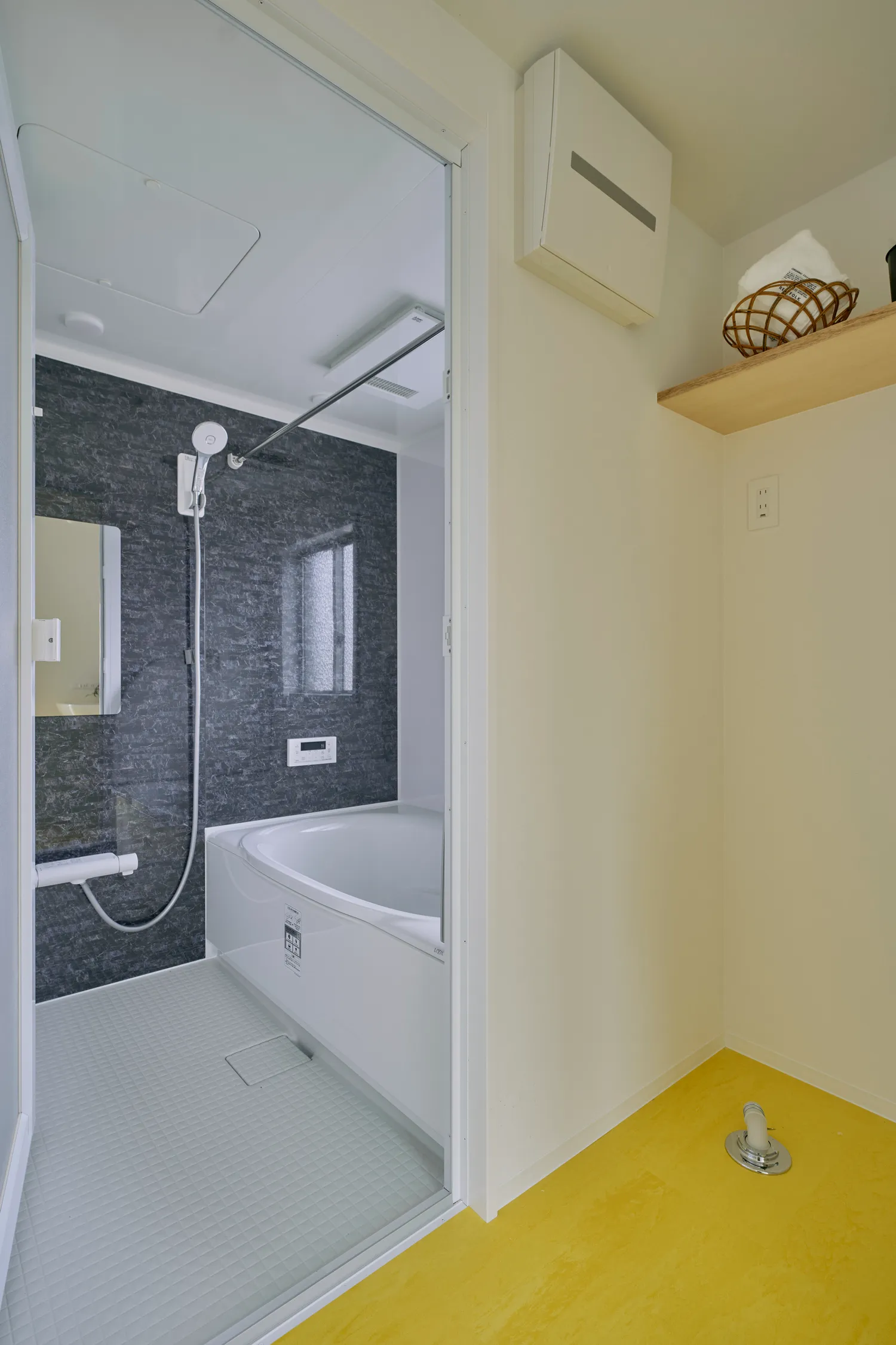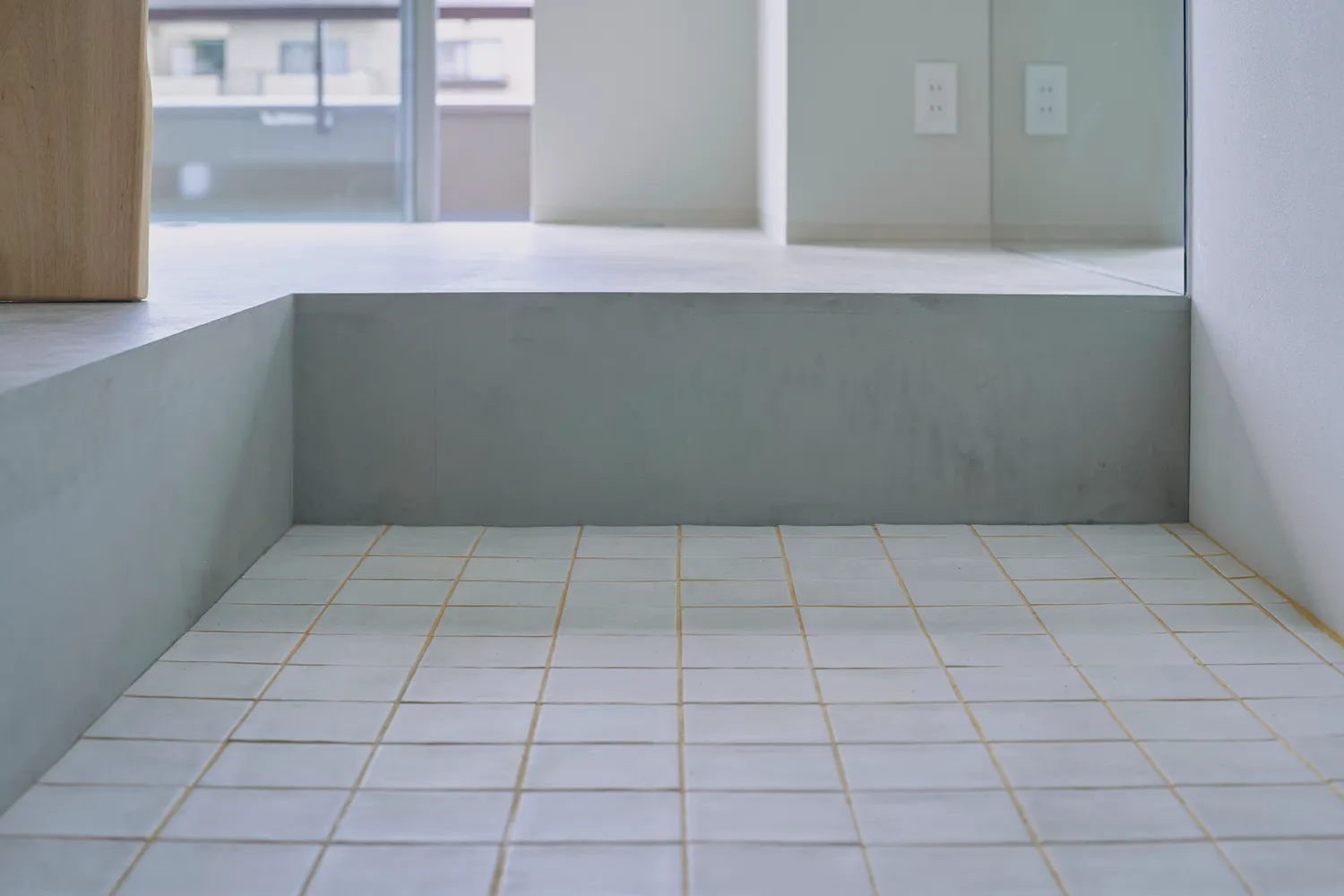 ❷素材含めて質の異なる空間を用意することで、メリハリを付けて変化を。
