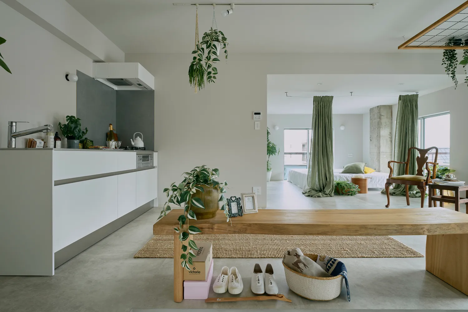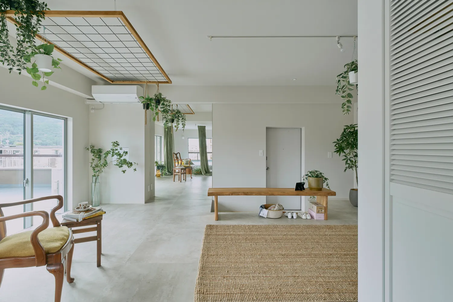 好きなアートを吊るしたり、植物や照明を垂らしたり、住まい手のアイデア次第で日常を豊かに彩ります。