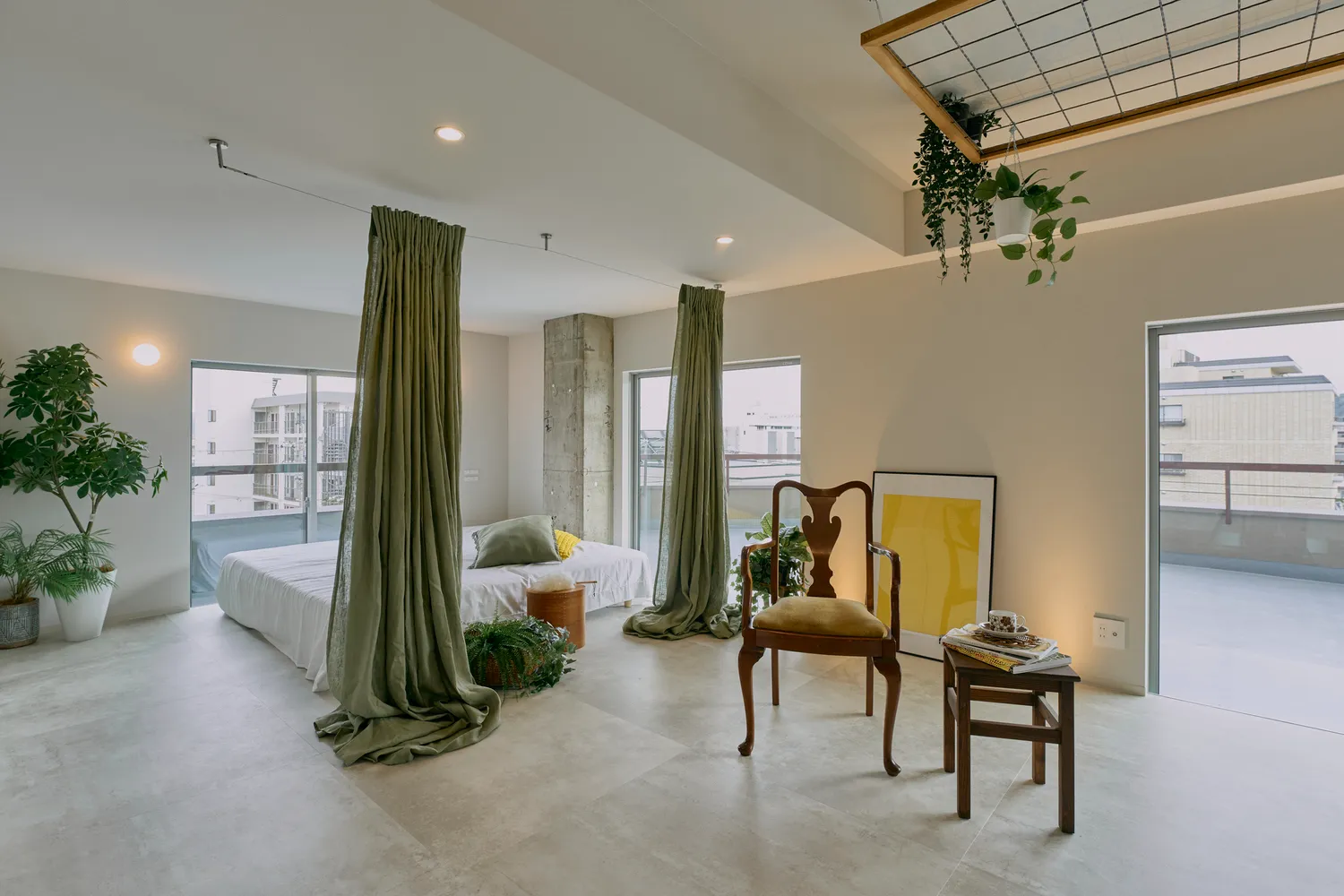 SOHOと言うこともあり、部屋での滞在時間が長い人を意識し、こんな家具を置いたらどうか、こんな照明器具が合うのではないか、この辺りに植栽を置いたら良さそうなどと考えながら設計監理したが、入居される方には設計者の想像を大きく裏切ってもらえるのを一番期待しているかもしれない。
